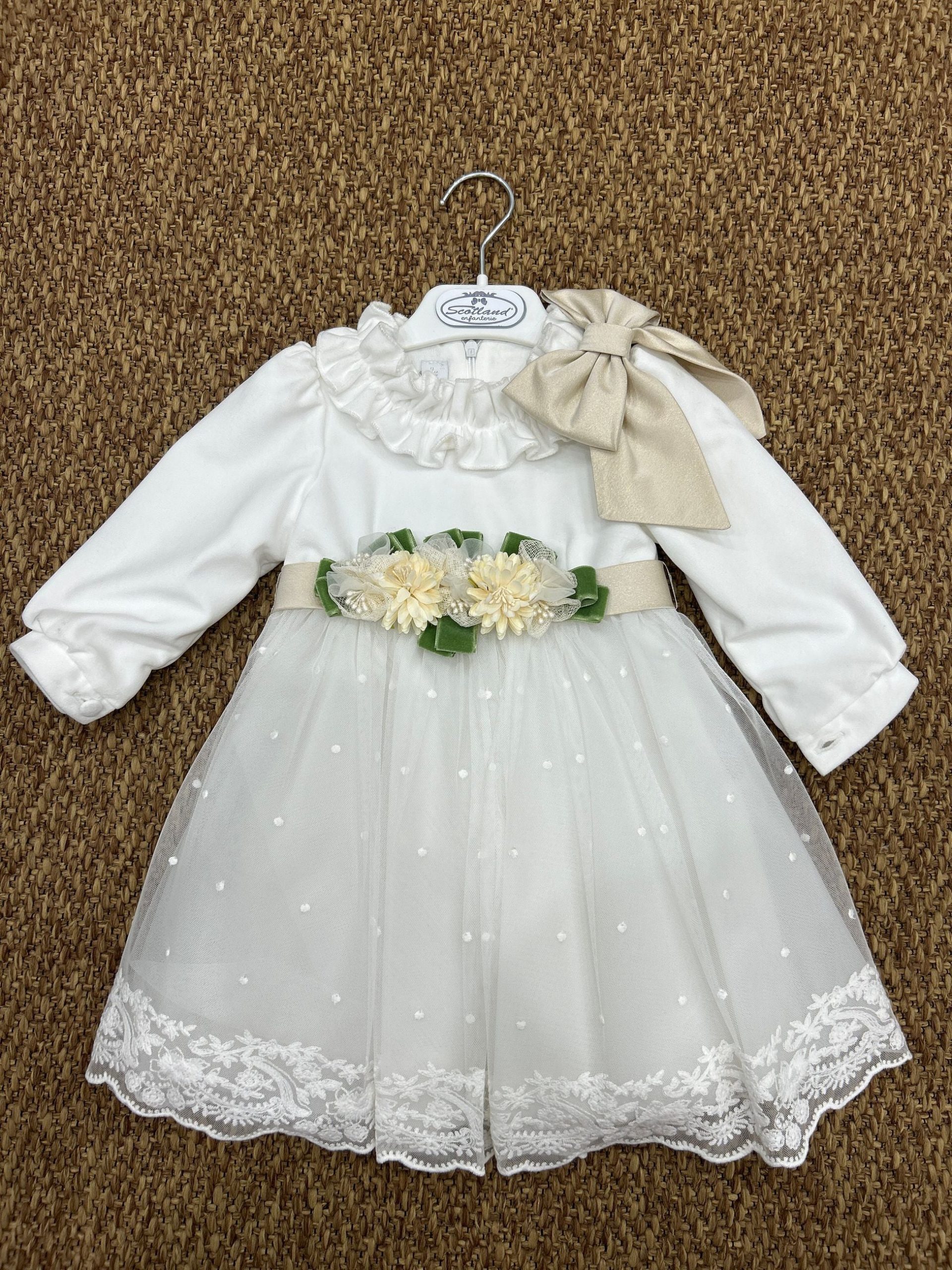 Delicato e romantico, questo abitino da bimba รจ perfetto per occasioni speciali o semplicemente per aggiungere un tocco elegante al guardaroba. Realizzato in tessuto morbido e confortevole.