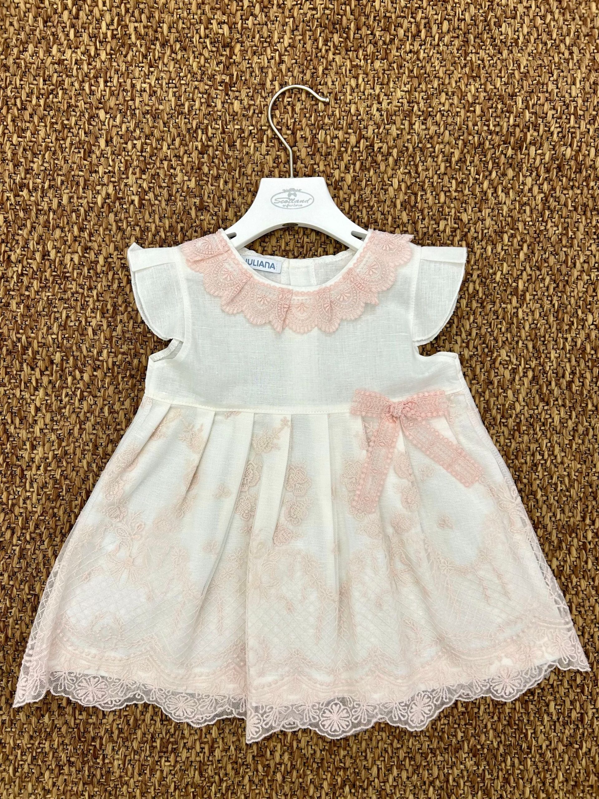 Abito bimba con fiocchetto rosa e merletto Juliana