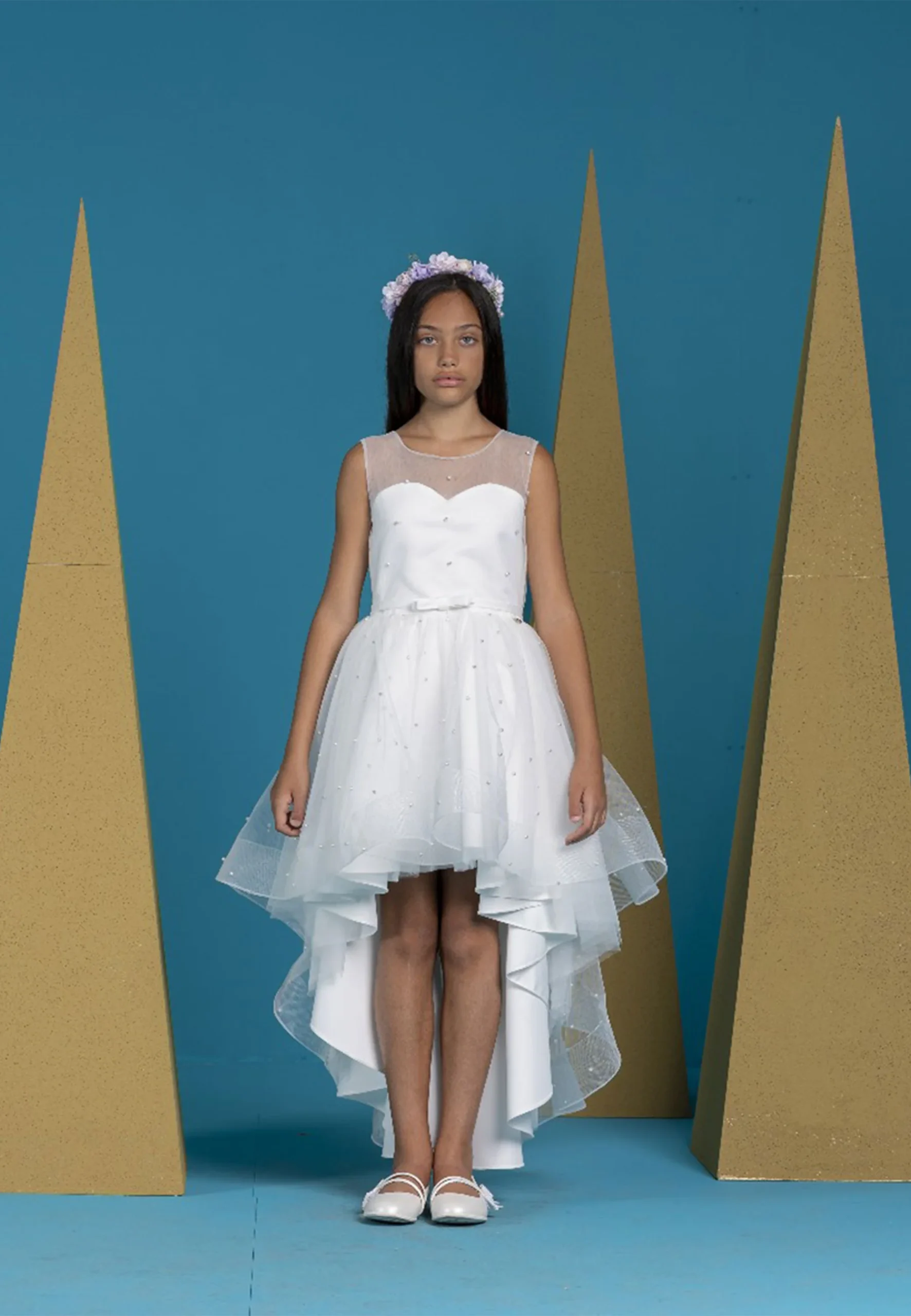 L’abito LES GAMINS da BAMBINA bianco è l’ideale per le occasioni speciali come cerimonie, damigelle o comunioni. Realizzato con cura e attenzione ai dettagli, presenta una lunghezza asimmetrica che conferisce un tocco di modernità ed eleganza. La decorazione con perline aggiunge un elemento di raffinatezza, mentre la fodera in cotone garantisce comfort e traspirabilità. Un capo unico e pregiato, perfetto per rendere indimenticabile ogni momento speciale nella vita della tua piccola.