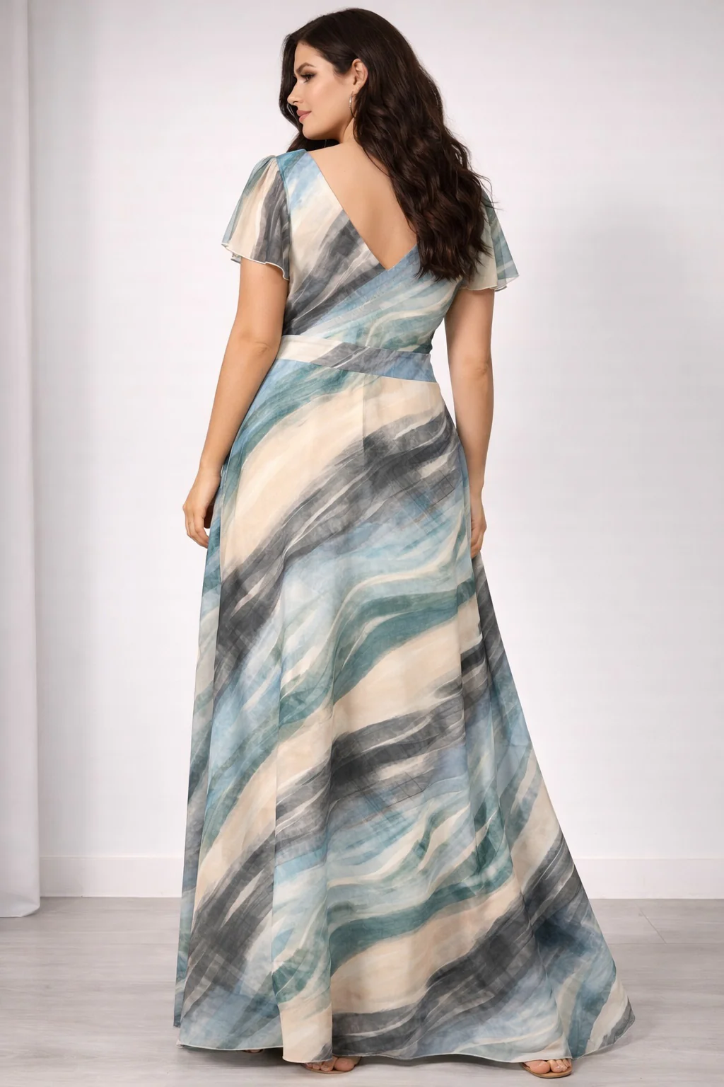 – Scollatura a V anteriore e posteriore per un’ eleganza senza pari.