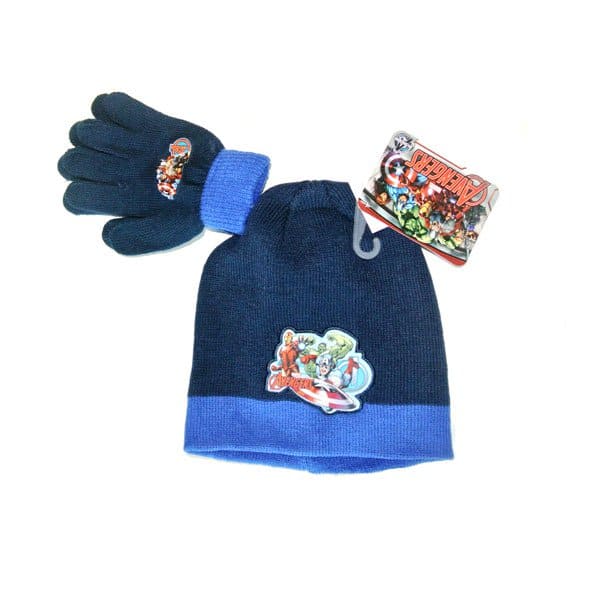 AVENGERS set ricamato Cappellino + Guanti Cappellino Avengers + Guanti Set invernale bambino Cappellino + Guanti Taglia unica: 50-52 cm (veste da 3 a 8 anni) Colore blu scuro Composizione: 100% acrilico