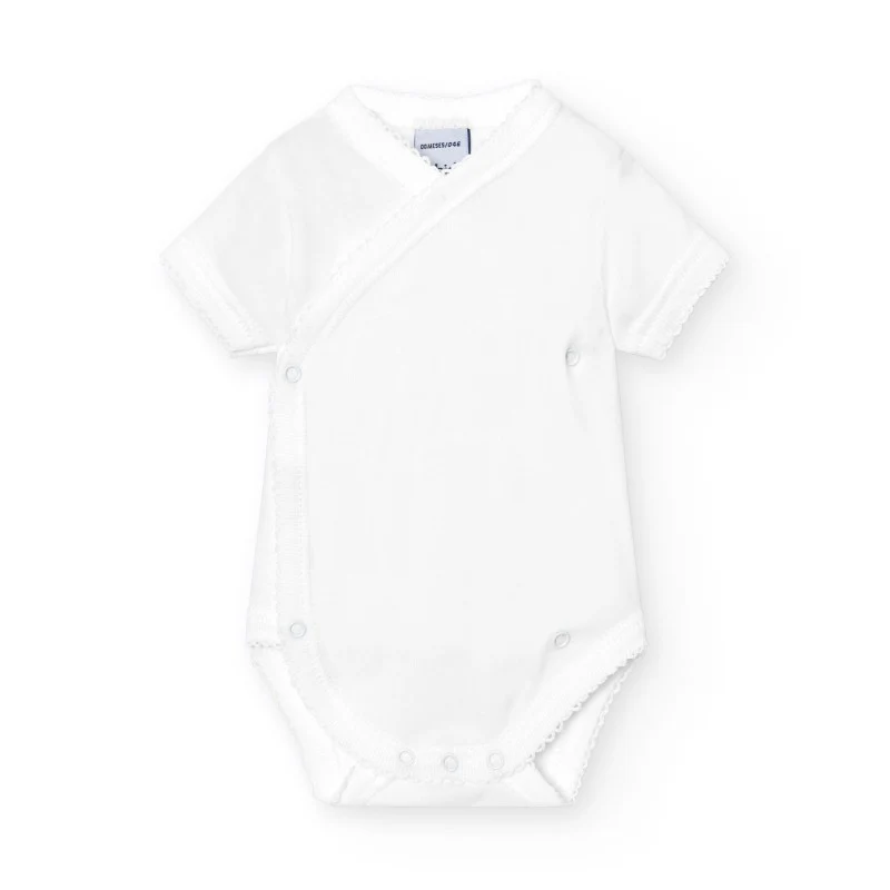 Body unisex a maniche corte incrociato. Realizzato in tessuto a costine molto elastico, che lo rende comodo e si adatta bene al corpo.