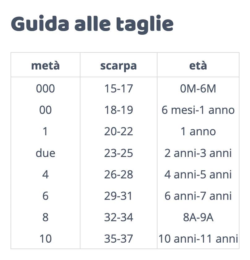 Taglie disponibili dalla 000 alla 2 – Vedi guida taglie