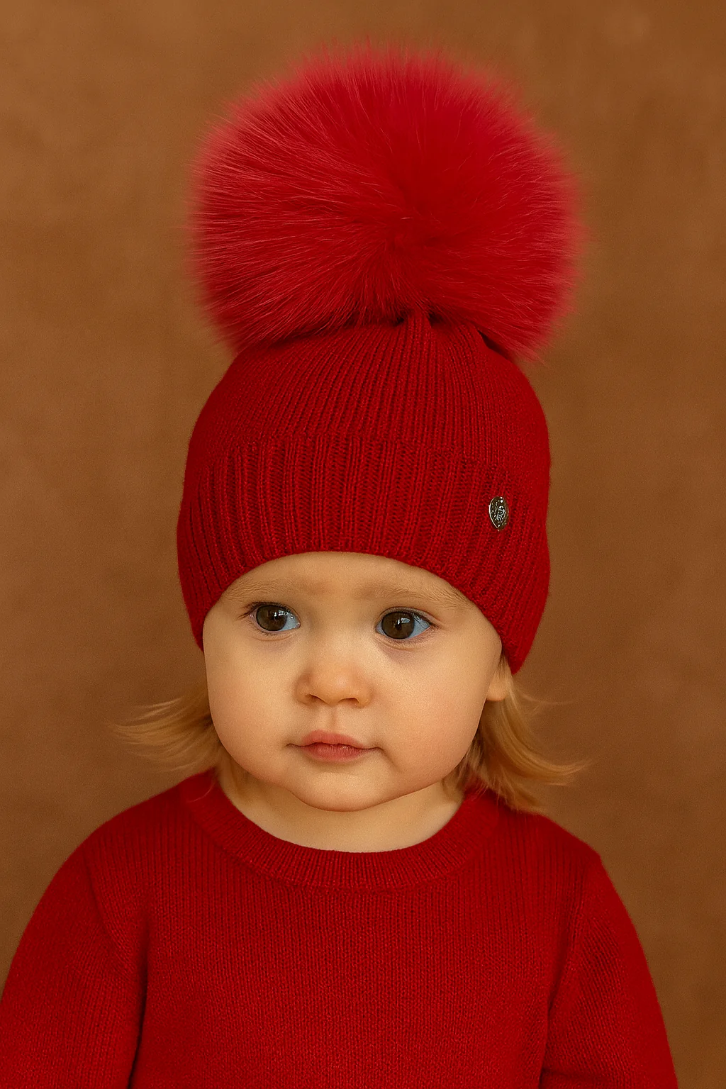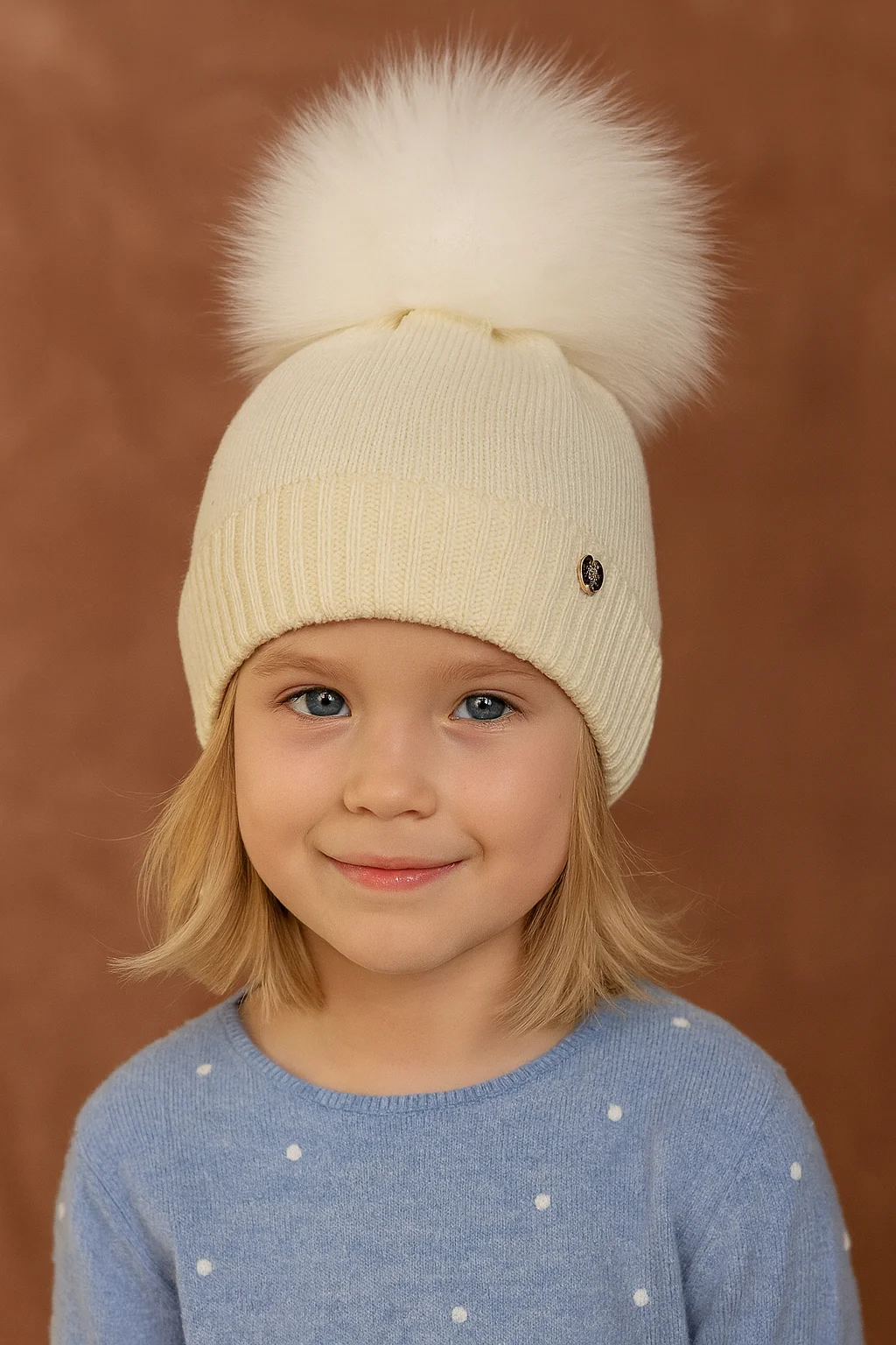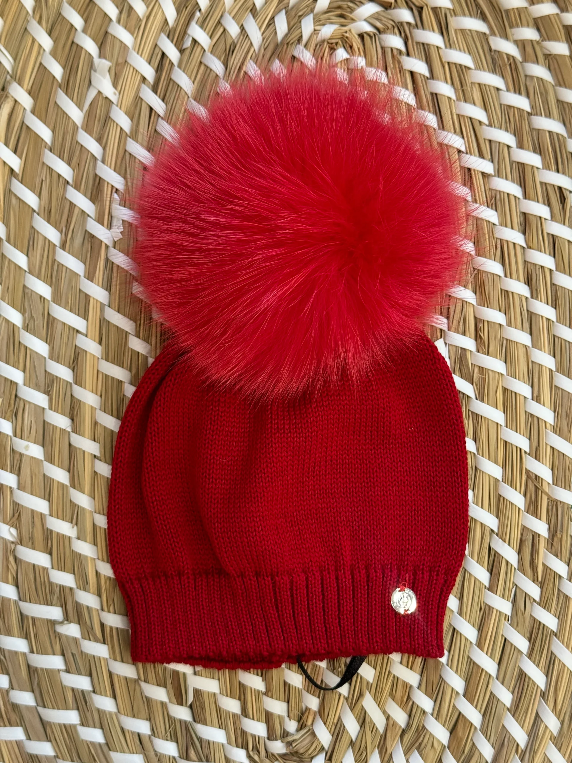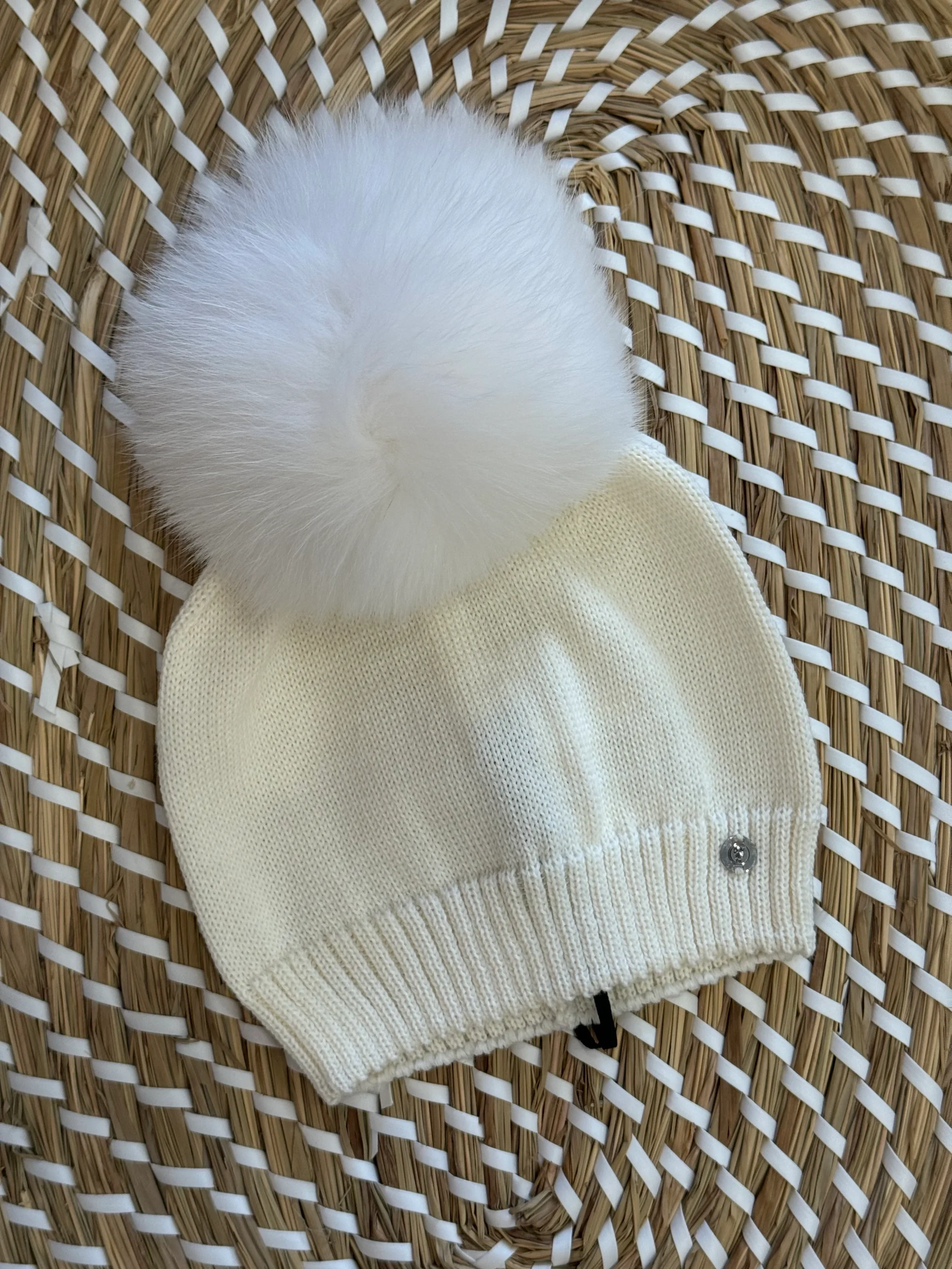 Cappello in lana con pompon in pelliccia naturale