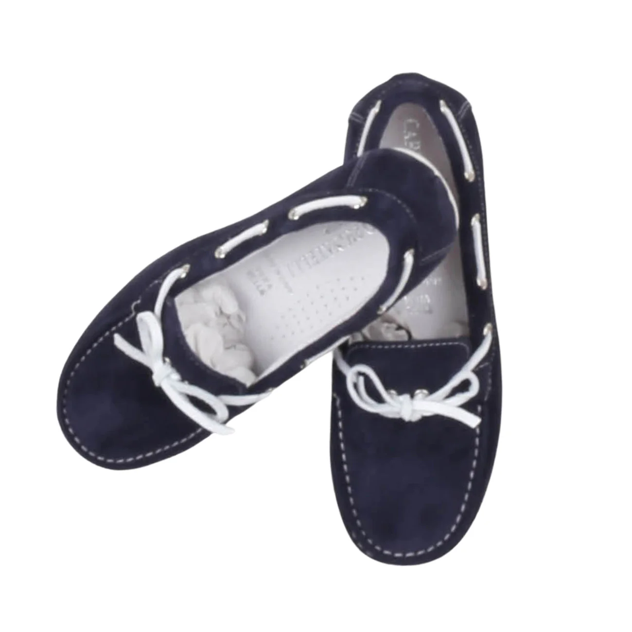 Eleganti mocassini in pelle blu realizzati in Italia, perfetti per il piccolo gentleman. Realizzati con pelle di qualità superiore al 100%, garantiscono comfort e stile senza compromessi.