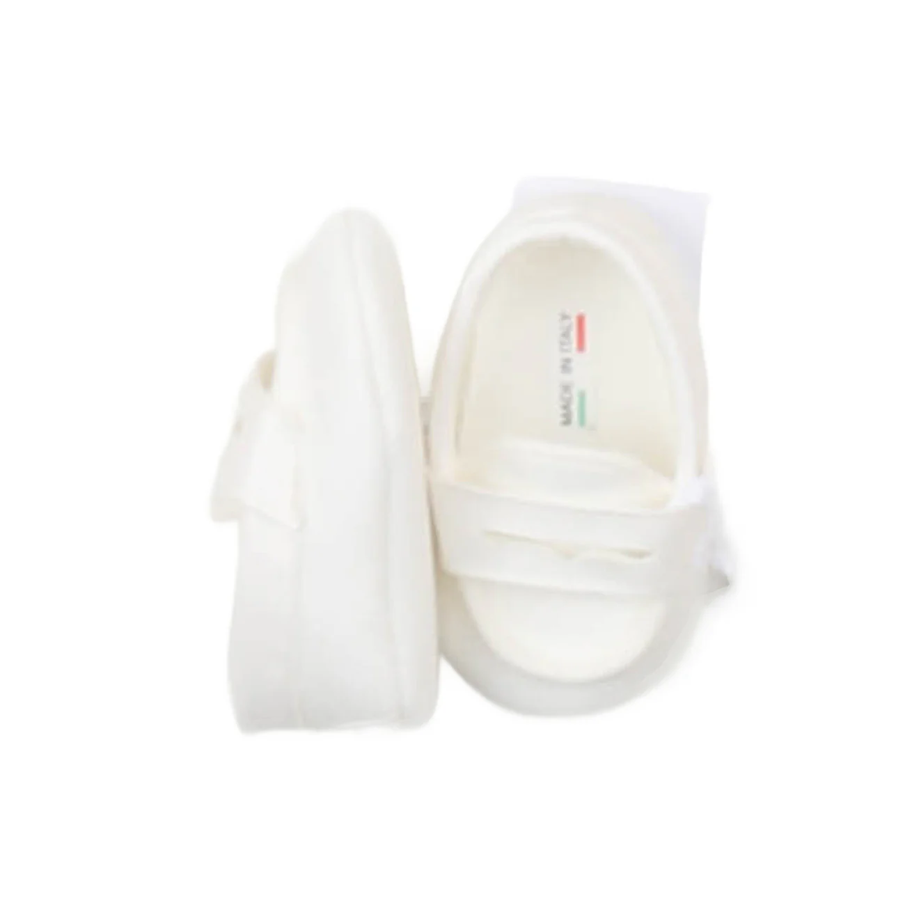 Delicate scarpine neonata realizzate in Italia, sapientemente confezionate con una composizione di viscosa e poliammide che garantisce morbidezza e traspirabilità, completate da un tocco di elastan per una vestibilità impeccabile. Ideali per i primi passi del vostro bambino.
