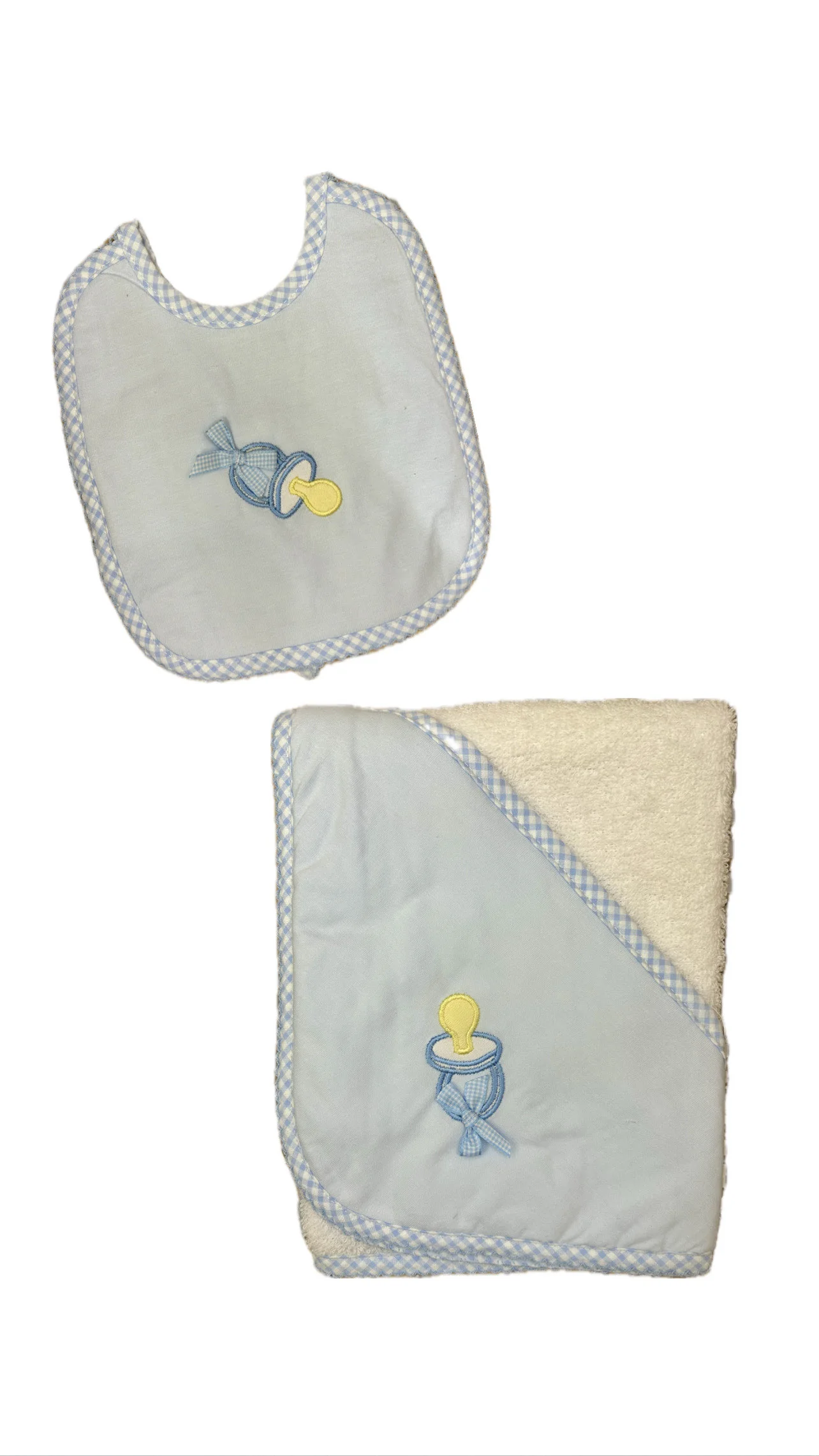 Completo accappatoio bimbi e bavetta con ricamo ciuccio Sardon