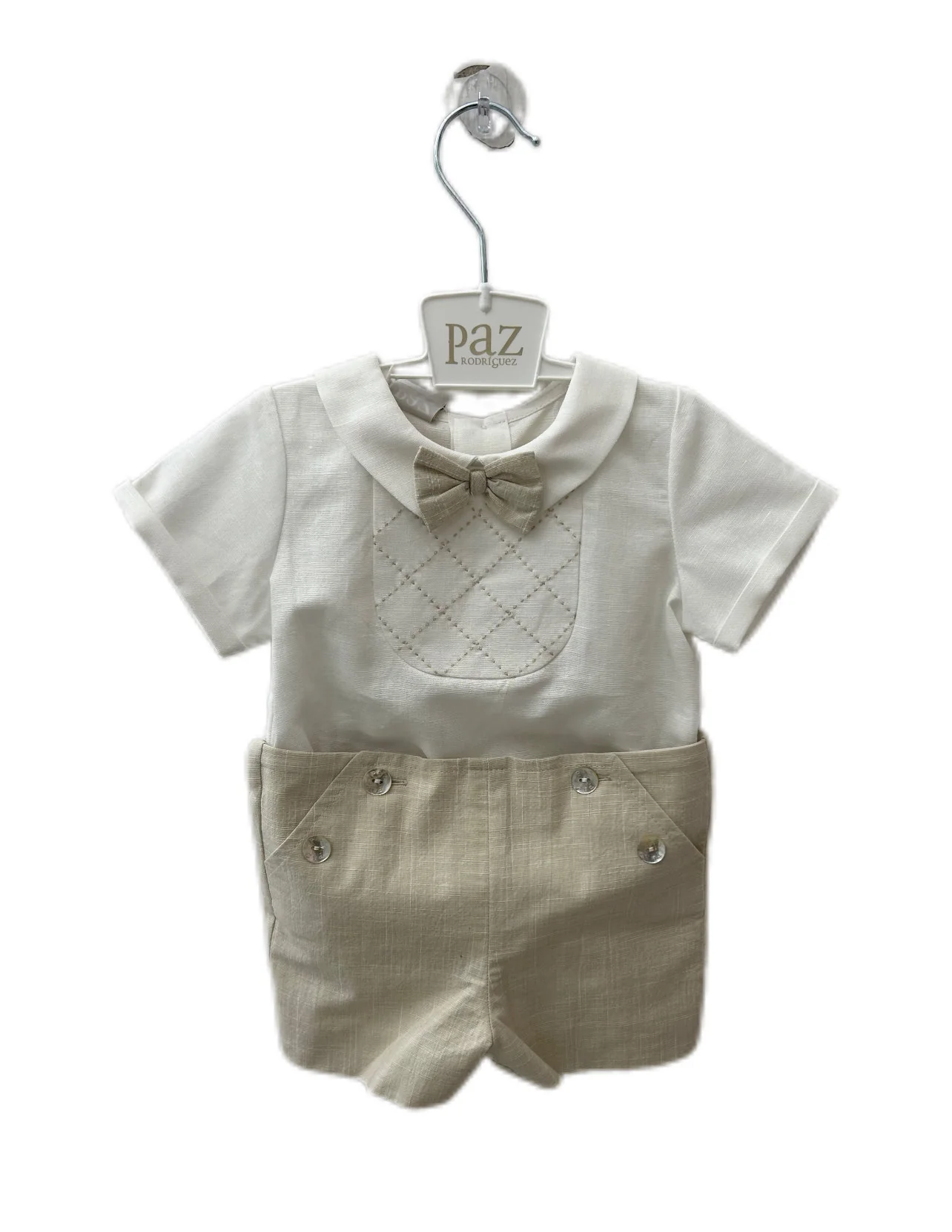 Completo bimbo 2pz in lino con papillon Paz Rodriguez