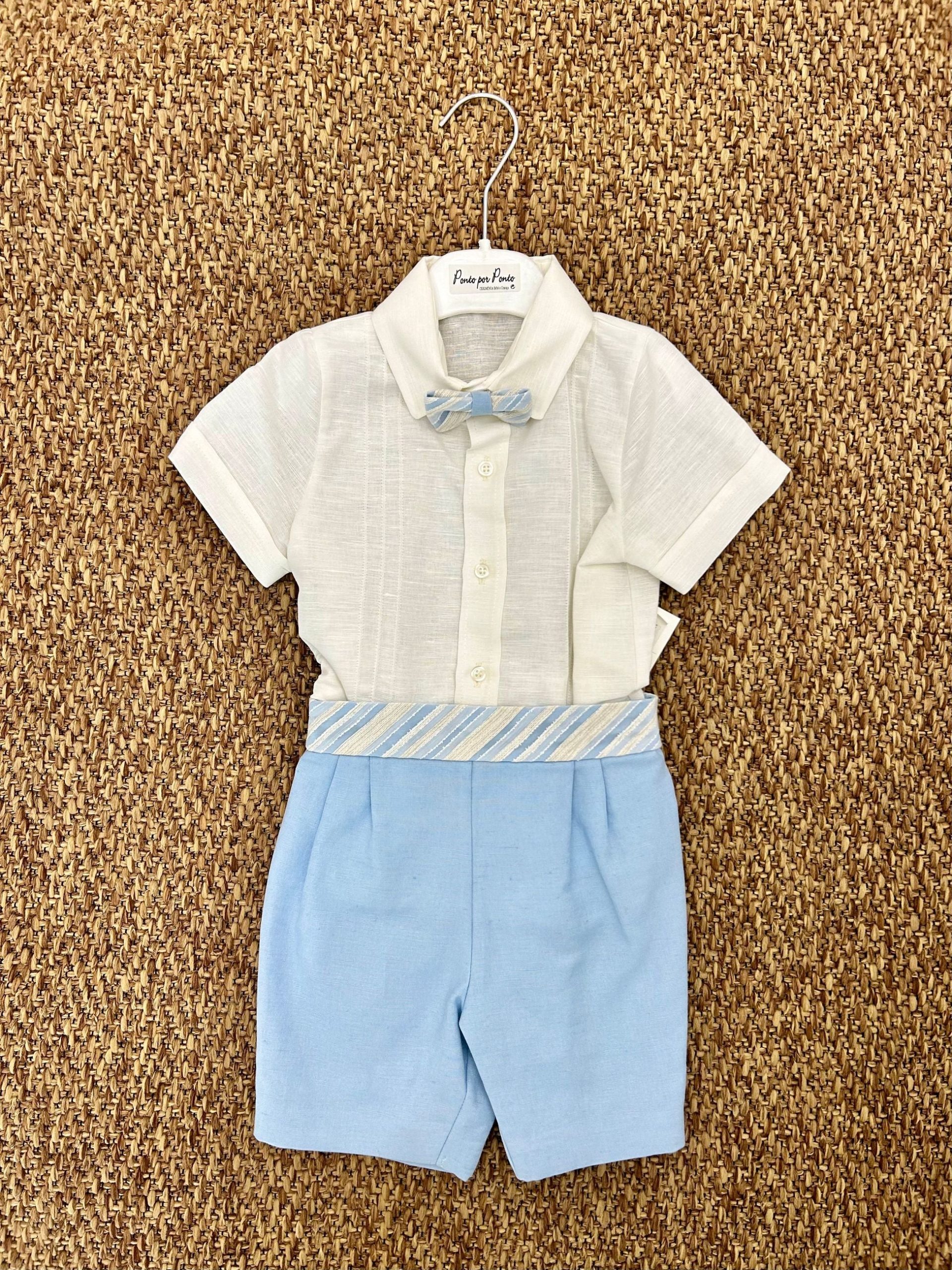 Completo bimbo in lino con papillon Ponto por Ponto
