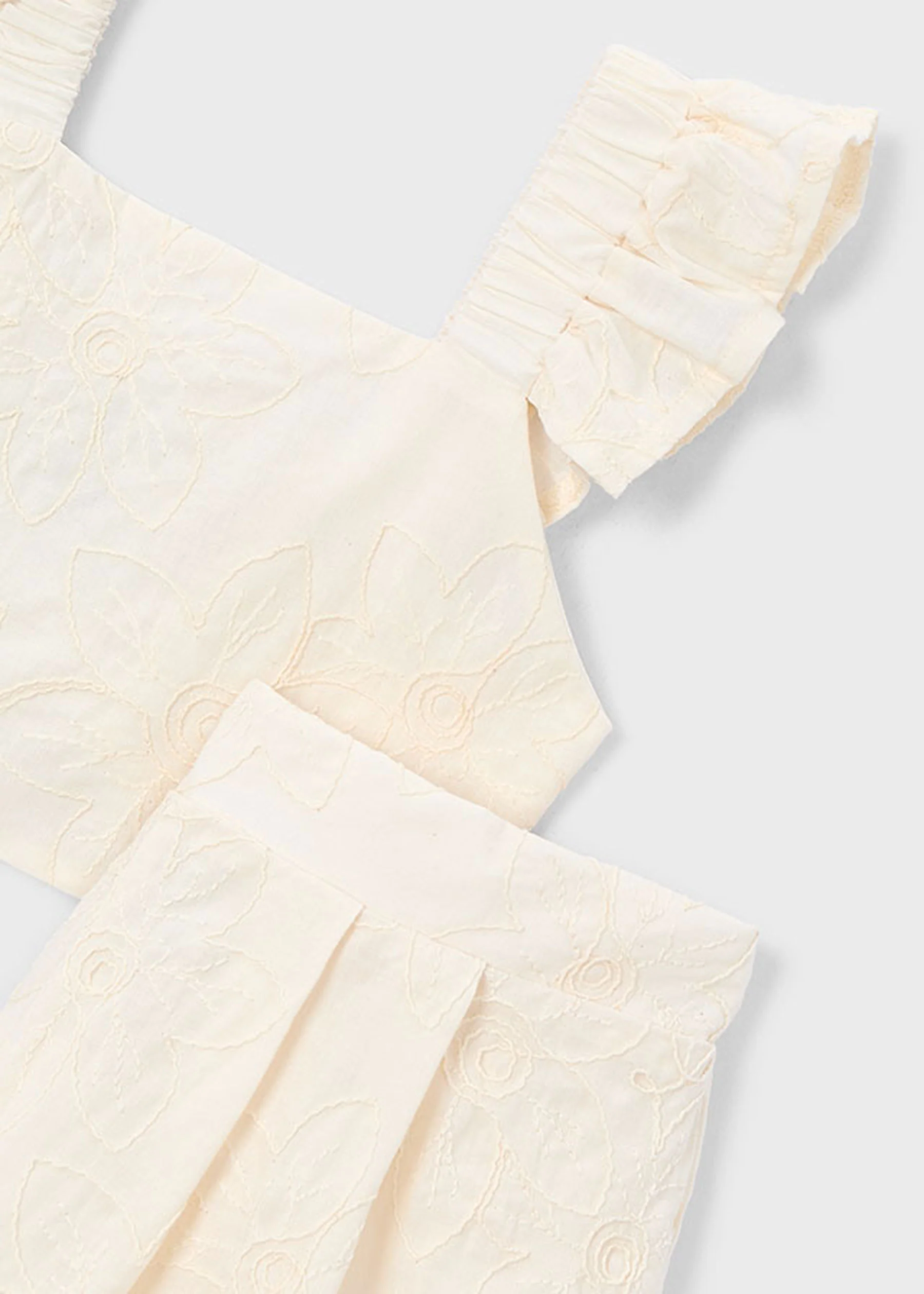 Questo completo Mayoral è la soluzione perfetta per donare alla tua bambina un look delicato e stiloso, ideale per ogni occasione, sia che si tratti di una cerimonia speciale che di un vivace pomeriggio di gioco all’aperto.