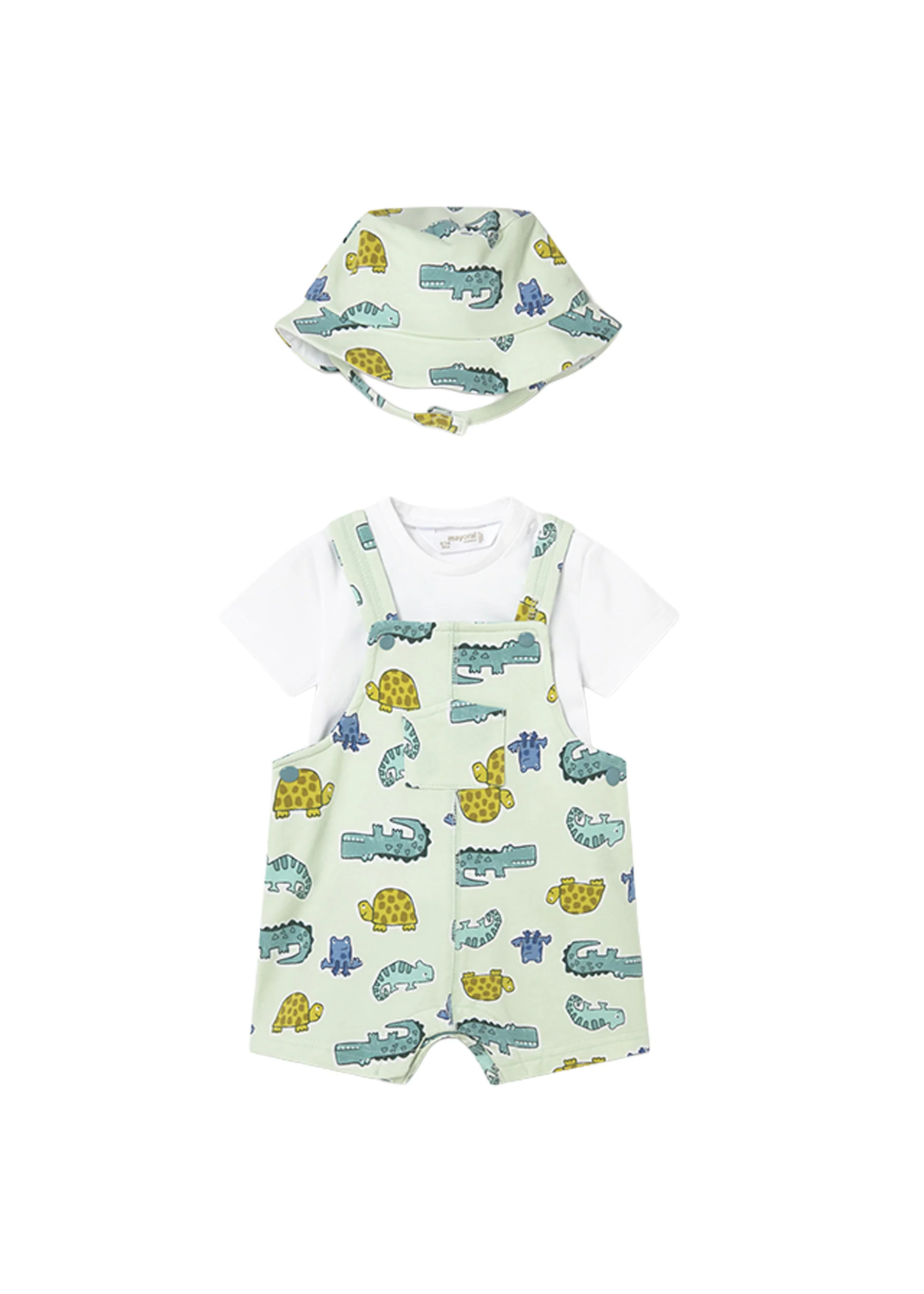 – Completo: Pagliaccetto corto stampato, t-shirt girocollo a manica corta e un adorabile cappellino alla pescatora.