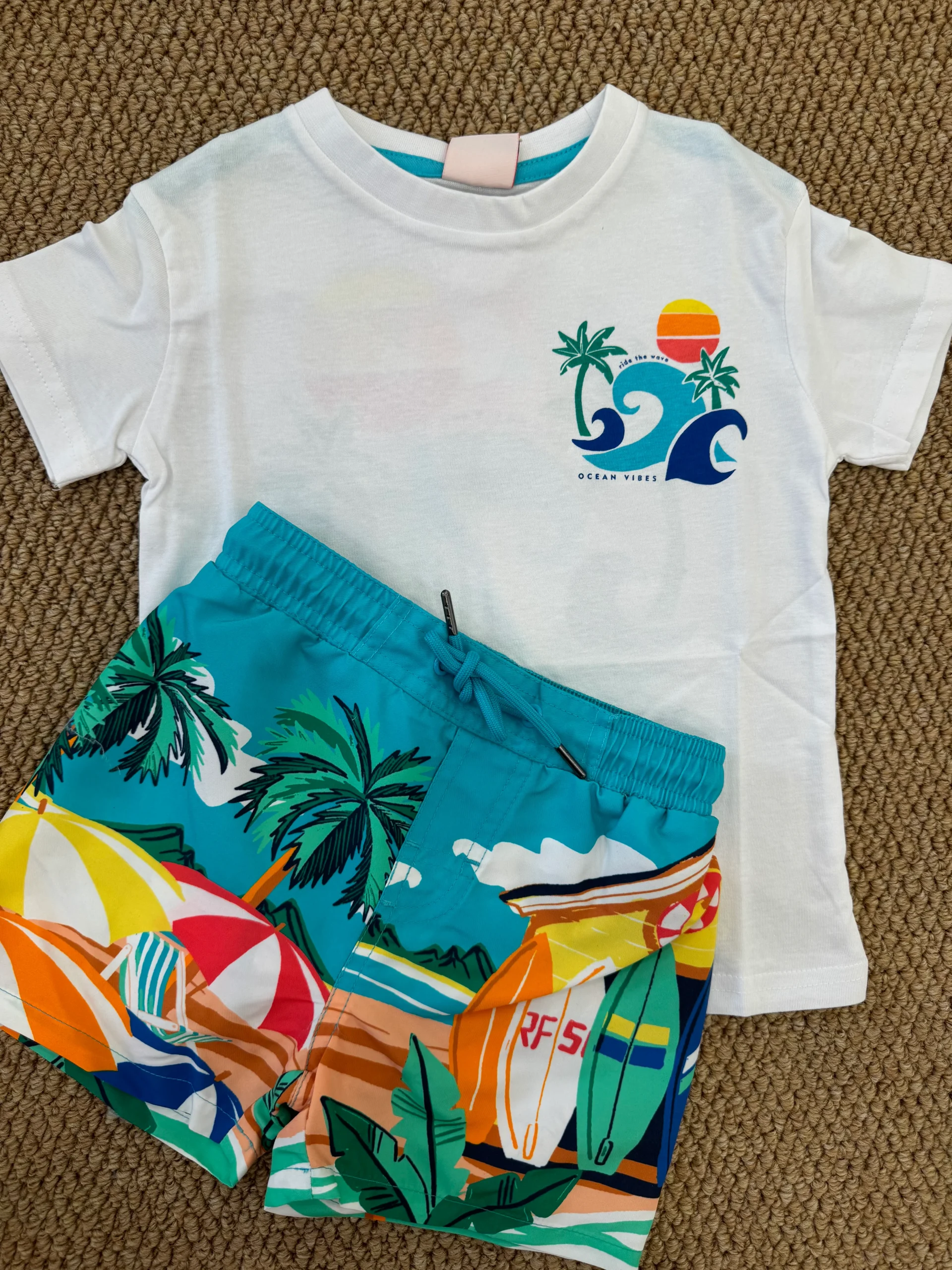 Costume in lucra di cotone modello pantaloncini con la sua t-shirt in cotone fantasia in coordinato