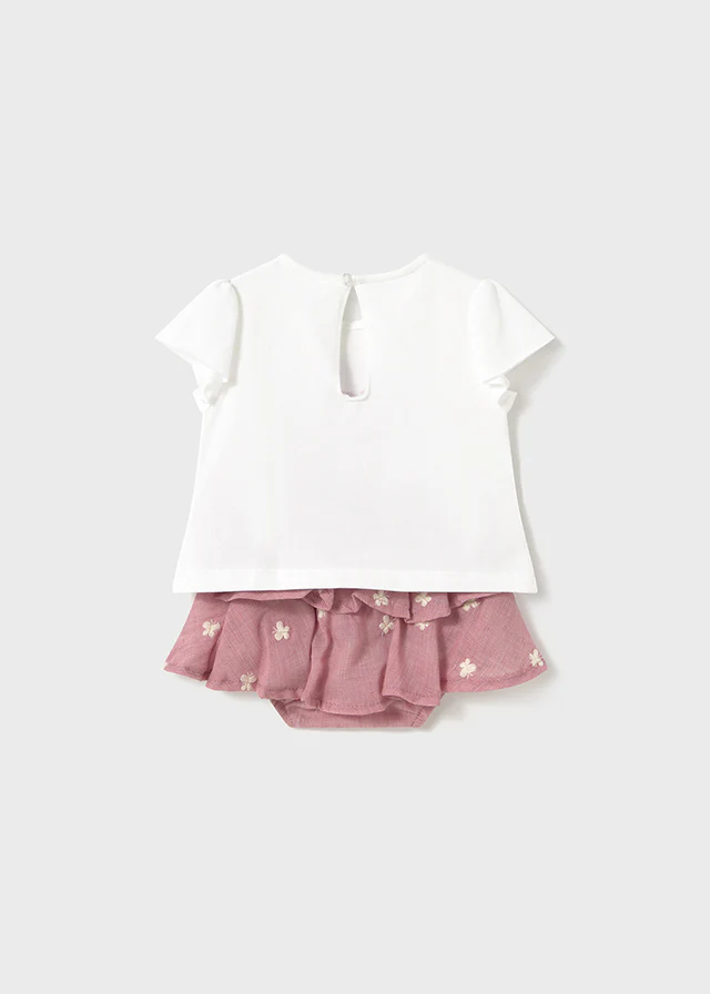Un insieme delicato e romantico per le piccole principesse! Questo adorabile completo di Mayoral è perfetto per le occasioni speciali o per un look casual e giocoso. La magliettina, con la sua stampa a farfalle colorate, è morbida e confortevole, mentre la gonna aggiunge un tocco di movimento e leggerezza.
