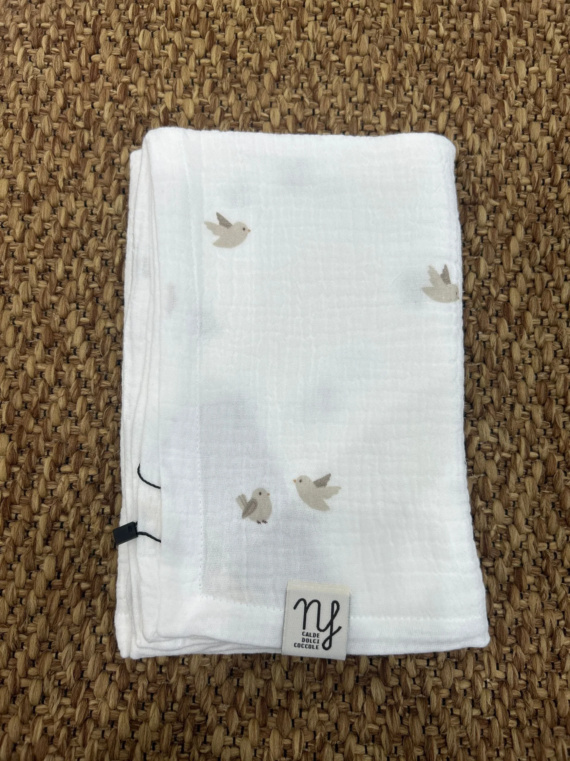 MUSS.UCCELLINI La mussola è un tessuto leggero, traspirante e morbidissimo, perfetto per la pelle delicata dei neonati. Ideale per copertine, quadrati multiuso, lenzuolini e capi d’abbigliamento, offre una sensazione di comfort e freschezza in ogni stagione. COD: 2142