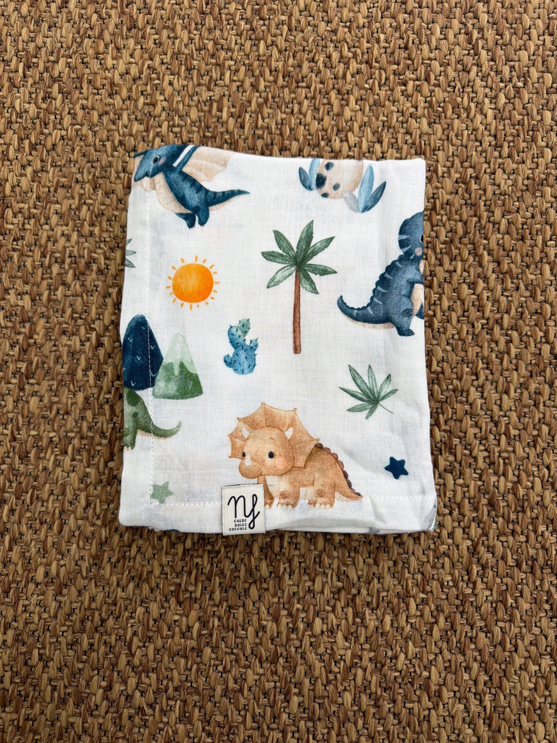 MUSS. DINOS Il quadrato in mussola è un accessorio indispensabile per il tuo bebè: morbido, traspirante e versatile, perfetto per la pelle delicata del neonato. Ideale come copertina leggera, telo per allattamento o asciugamano dopo il bagnetto. COD: 489