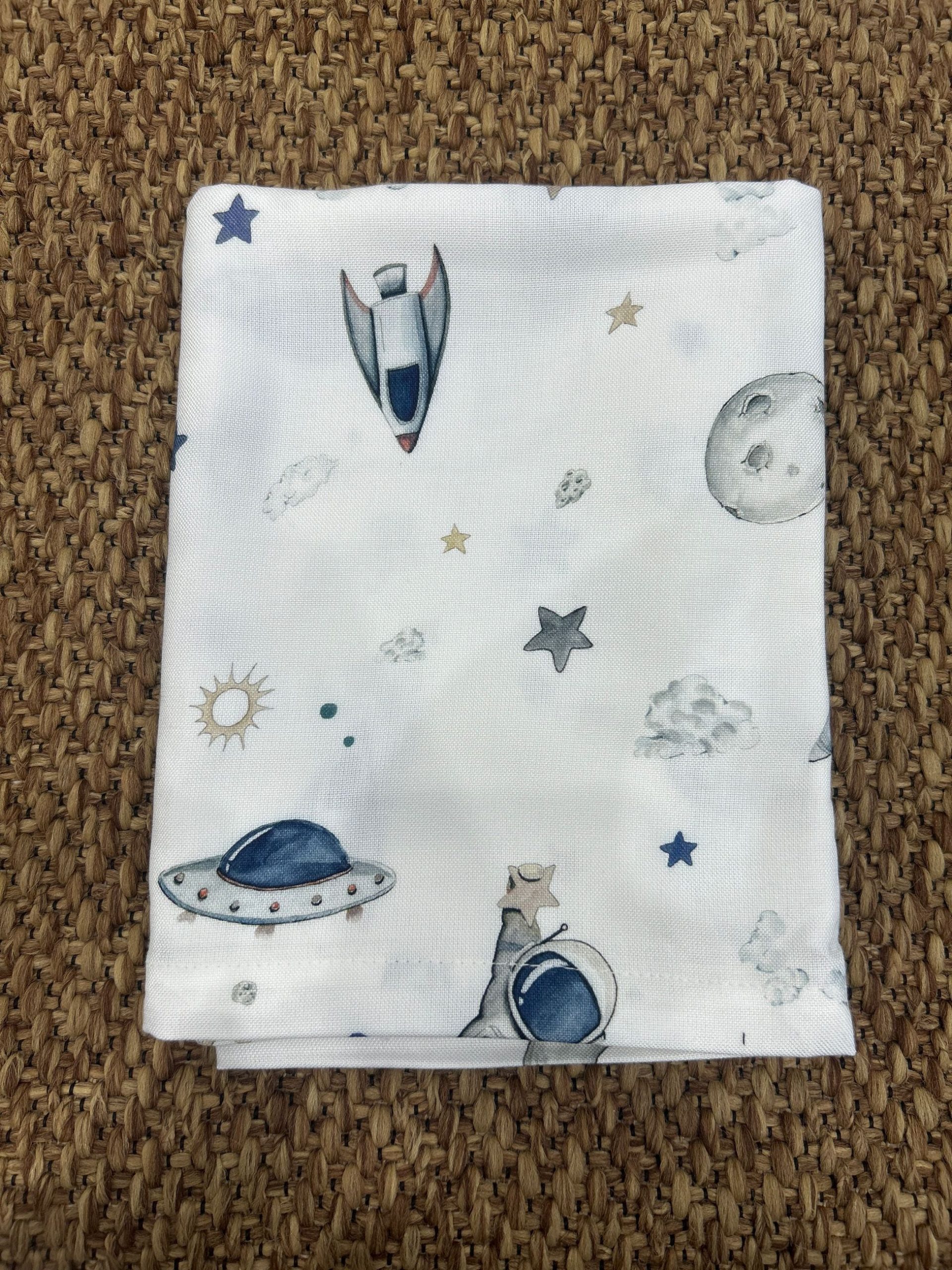 MUSSOLA SPACE La mussola è un tessuto leggero, traspirante e morbidissimo, perfetto per la pelle delicata dei neonati. Ideale per copertine, quadrati multiuso, lenzuolini e capi d’abbigliamento, offre una sensazione di comfort e freschezza in ogni stagione. COD: 349