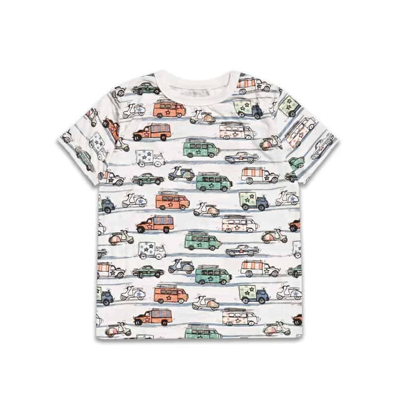 Maglietta manica corta da bambino fantasia macchine Marchio: Riot Club Colore: crema e multicolore Composizione: 100% cotone