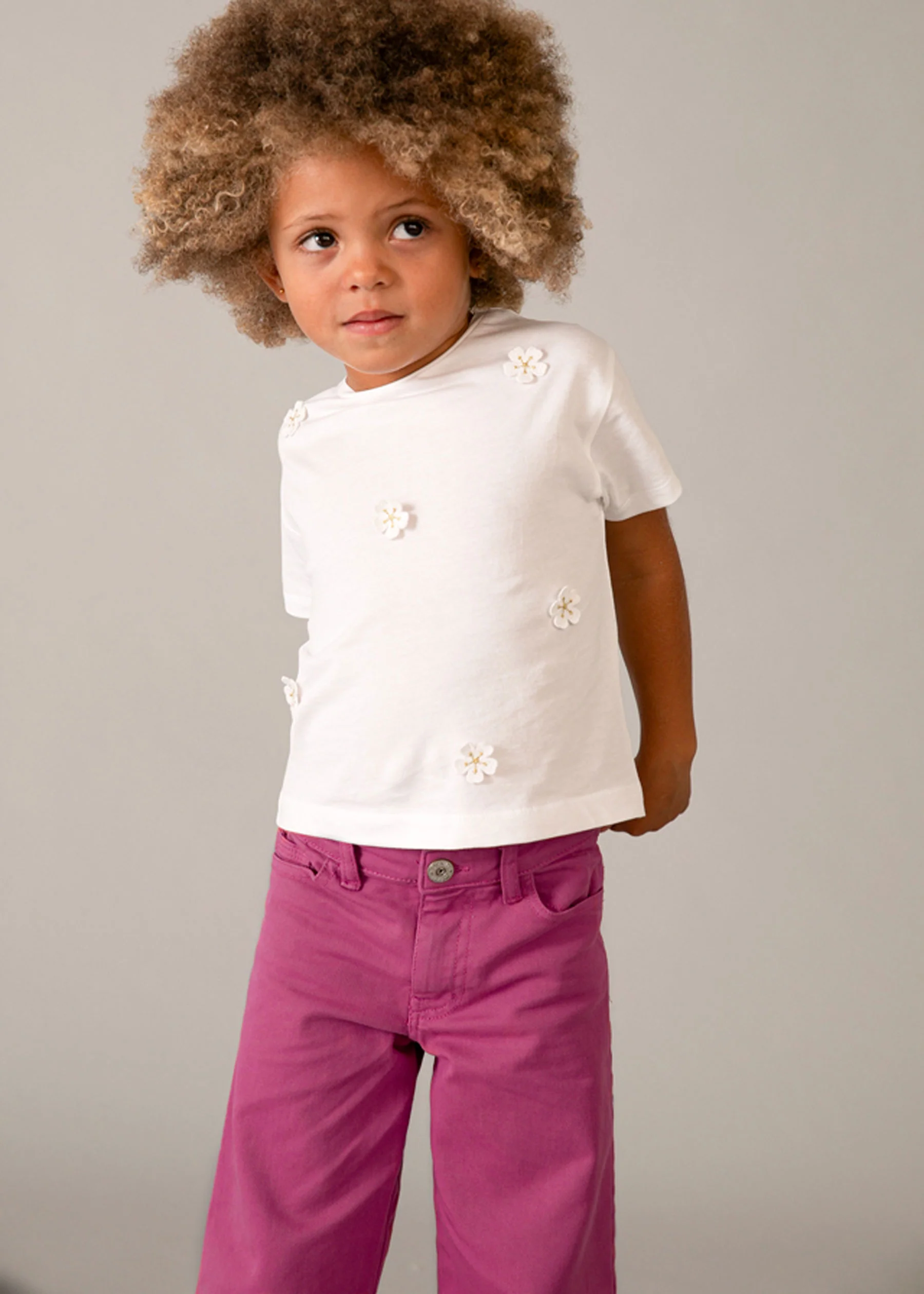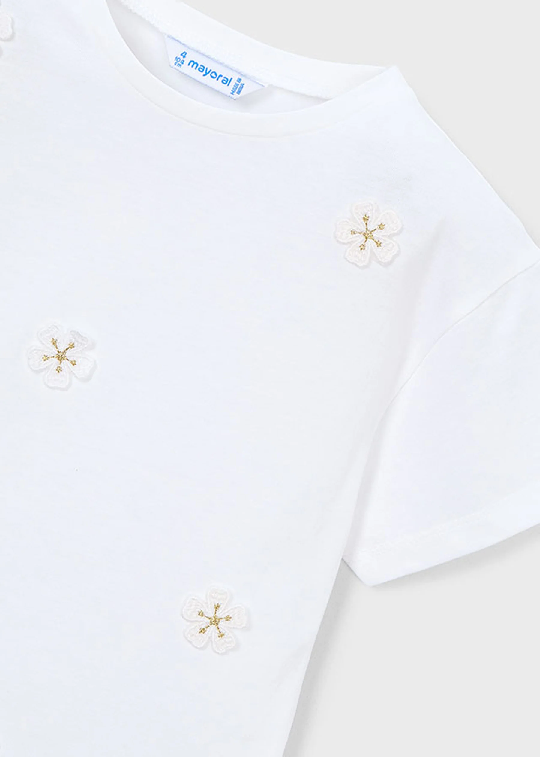 Il tocco di stile per la tua piccola stella nasce dalla creatività del marchio MAYORAL con il modello di T-shirt 3013, pronta ad aggiungere charme e comodità alla sua primavera ed estate.