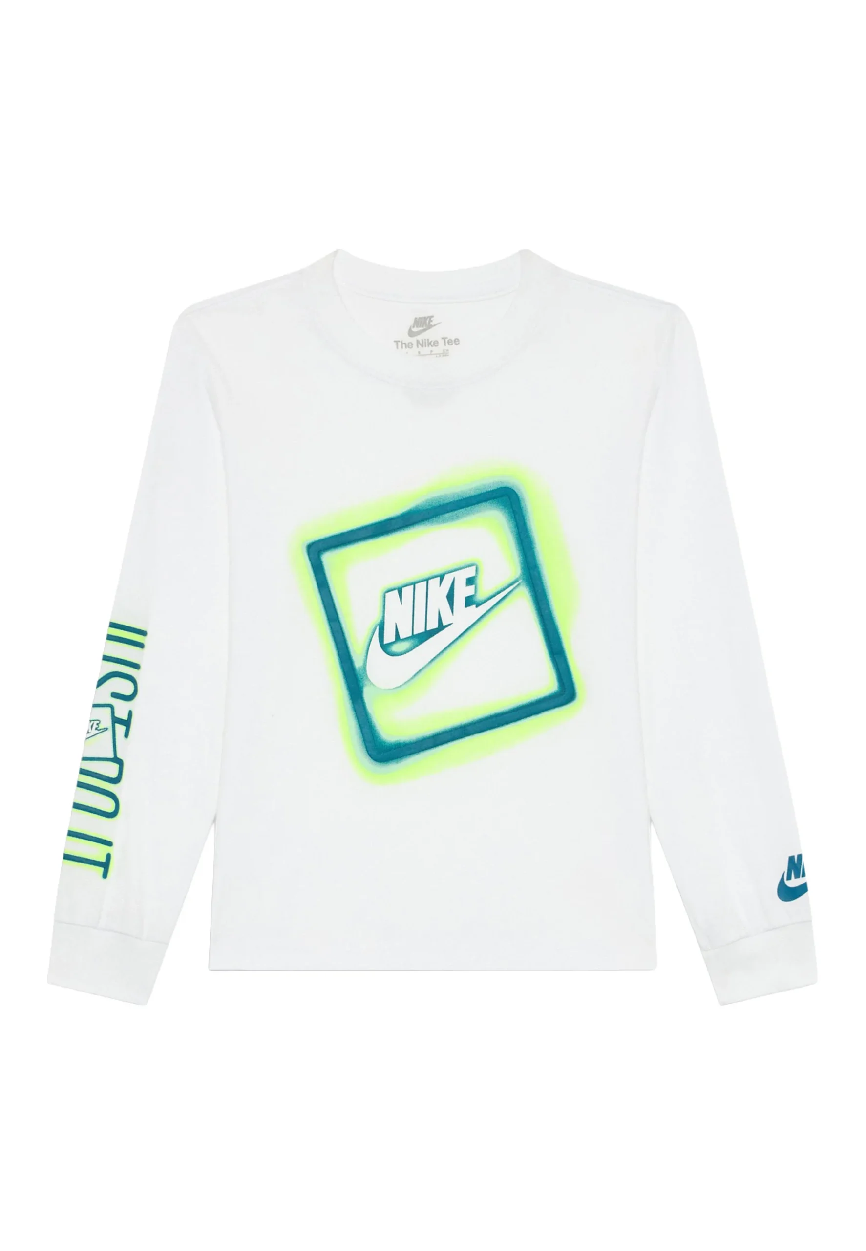 Scopri la nuova T-shirt a manica lunga da bambino di NIKE! Con un design accattivante e giovanile, questa T-shirt bianca presenta un comodo girocollo e polsini elastici per assicurare una vestibilità perfetta che tiene il passo con i movimenti energici dei più piccoli. Il tocco finale? Una vivace stampa fluo sul fronte che fa risaltare lo spirito dinamico di ogni bambino. Ideale per lo sport, il gioco e ogni avventura quotidiana, la nostra T-shirt offre comfort e stile in puro stile NIKE. Non lasciarti sfuggire l’opportunità di aggiungere un capo unico al guardaroba dei tuoi bambini: con la nostra T-shirt, saranno sempre pronti a esprimere la loro personalità brillante e attiva! Visita il nostro sito per più informazioni e acquista ora per uno stile fresco e confortevole in ogni occasione.
