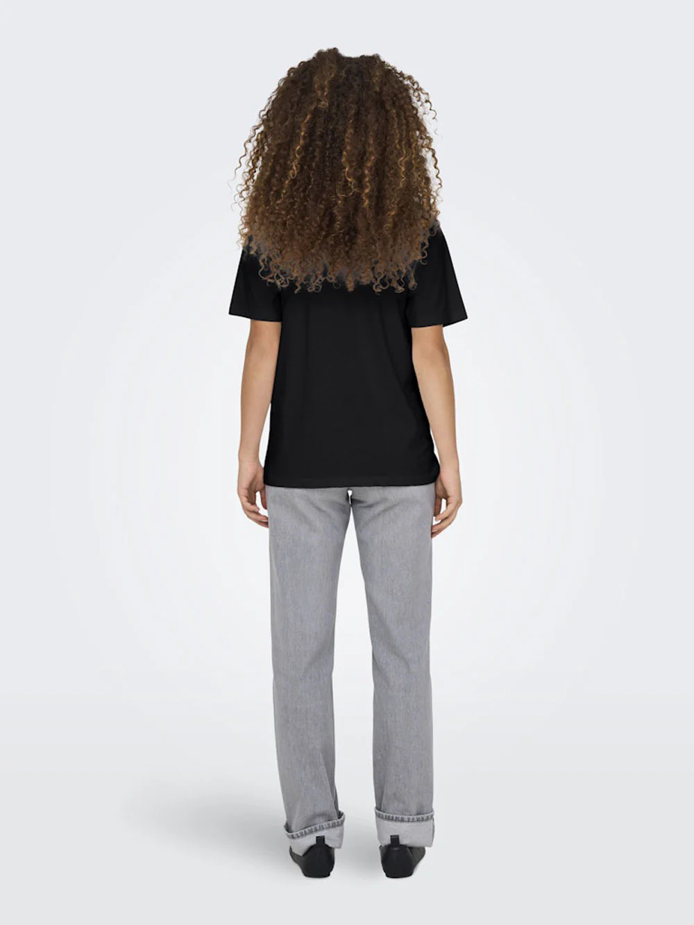 Scopri la nuova T-shirt da donna “ONLY” in elegante nero, il must-have che non può mancare nel tuo armadio! Questa T-shirt non solo valorizza ogni outfit con un tocco di classe, ma offre anche un comfort incredibile, perfetta per ogni occasione, dal caffè con le amiche a una giornata di lavoro, fino a una serata speciale.
