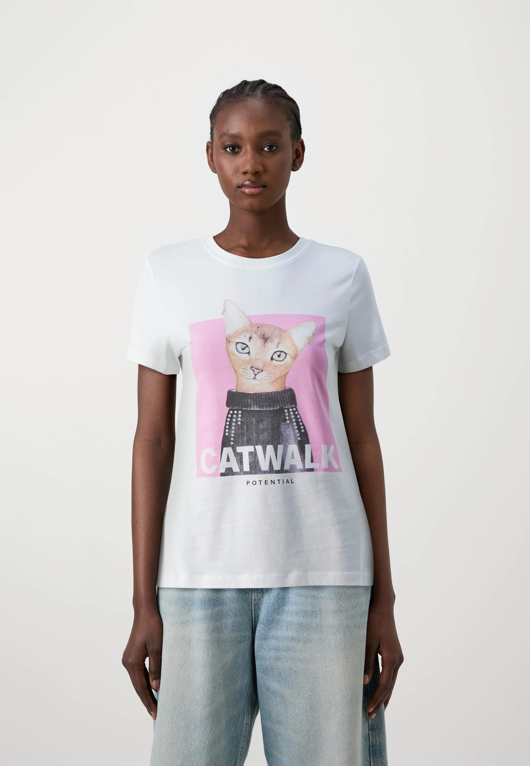 La T-shirt ONLY da donna – Bright White è un capo essenziale per il guardaroba di ogni donna. Realizzata in morbido cotone organico, è disponibile in un luminoso colore bianco. La t-shirt presenta una stampa deliziosa di un gattino sul davanti, che aggiunge un tocco divertente e giocoso al look. Con maniche corte e scollo rotondo, questa t-shirt è perfetta per outfit casual e comodi. Un capo versatile e alla moda, ideale per completare ogni outfit.