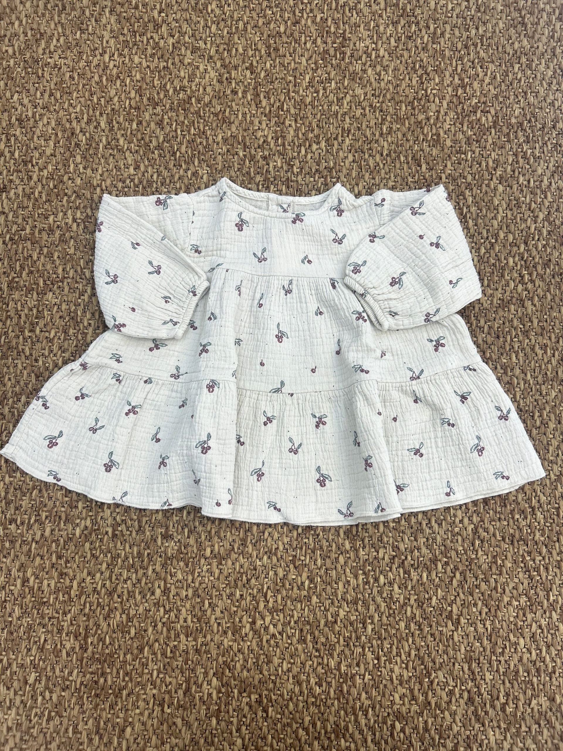 Questa tunica è realizzata in tessuto di cotone. È un modello con maniche lunghe a sbuffo, scollo rotondo e la nostra stampa di corbezzoli.